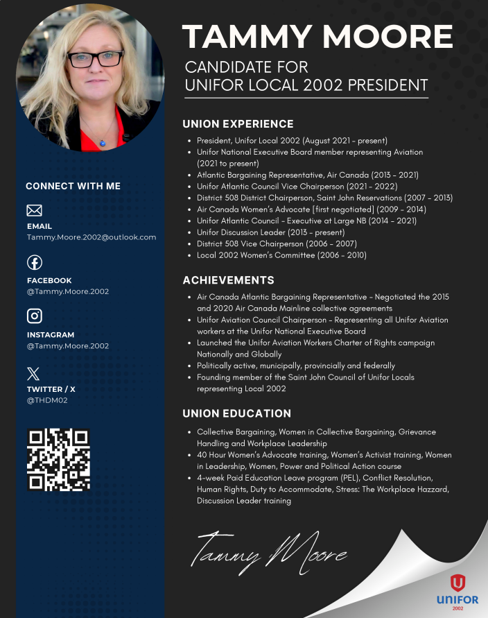 MESSAGE FROM TAMMY MOORE, UNIFOR LOCAL 2002 PRESIDENT